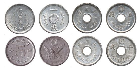 Moedas de estanho-zinco do Japão